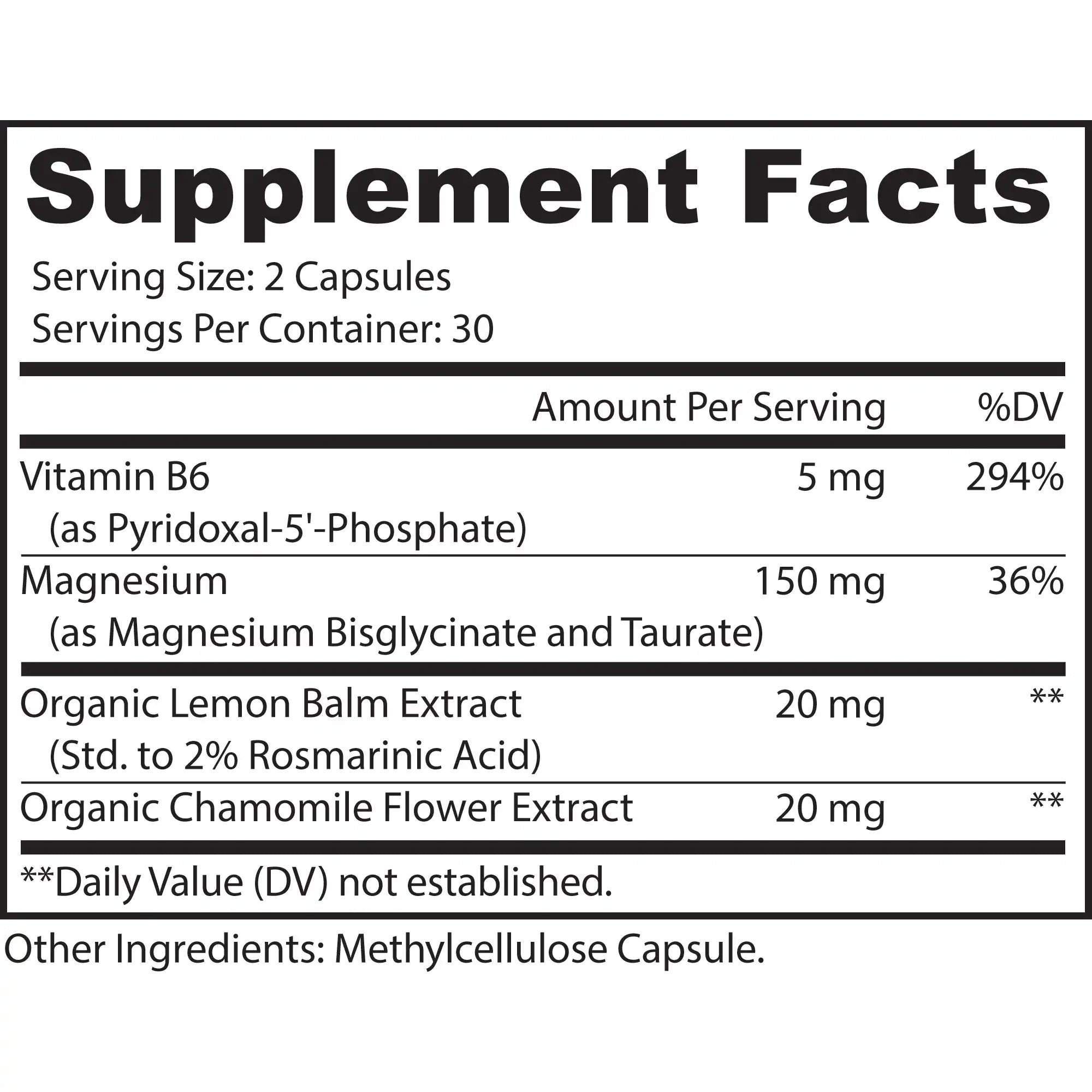 Calming Botanical Blend: Includes organic chamomile flower and lemon balm extract, traditionally used to promote relaxation and a calm nighttime routine. Vegan, non-GMO, gluten-free, made in the USA in a GMP-certified facility and third-party tested with no artificial fillers.
