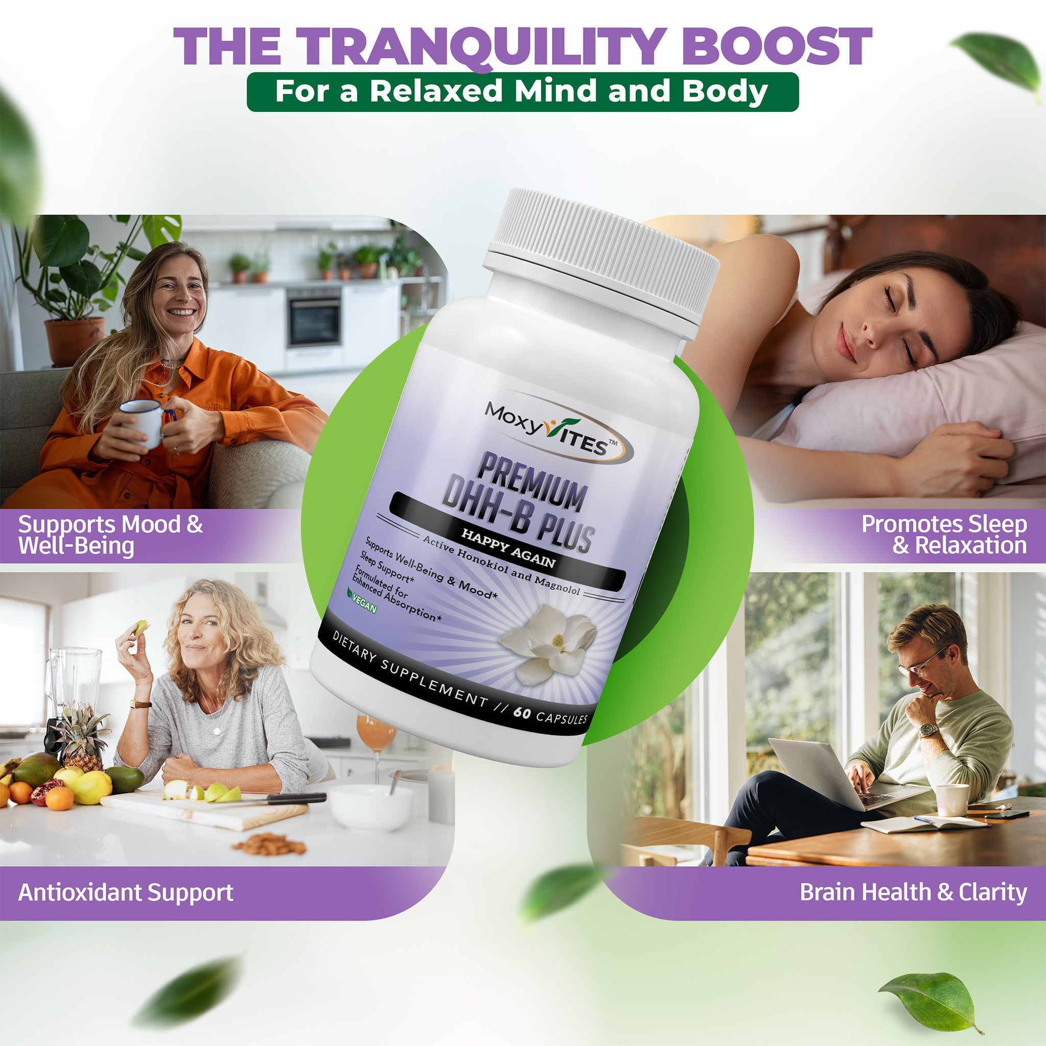• DHHB (Dihydrohonokiol-B) is an all-natural supplement that contains a higher dosage of bioactive compounds, including 98% pure honokiol and magnolol. Research has shown that it promotes a natural sense of calm and happiness. If you're feeling stressed, your brain and body may benefit from some extra nutritional support. DHHB can be the solution to help you get the relief you need.